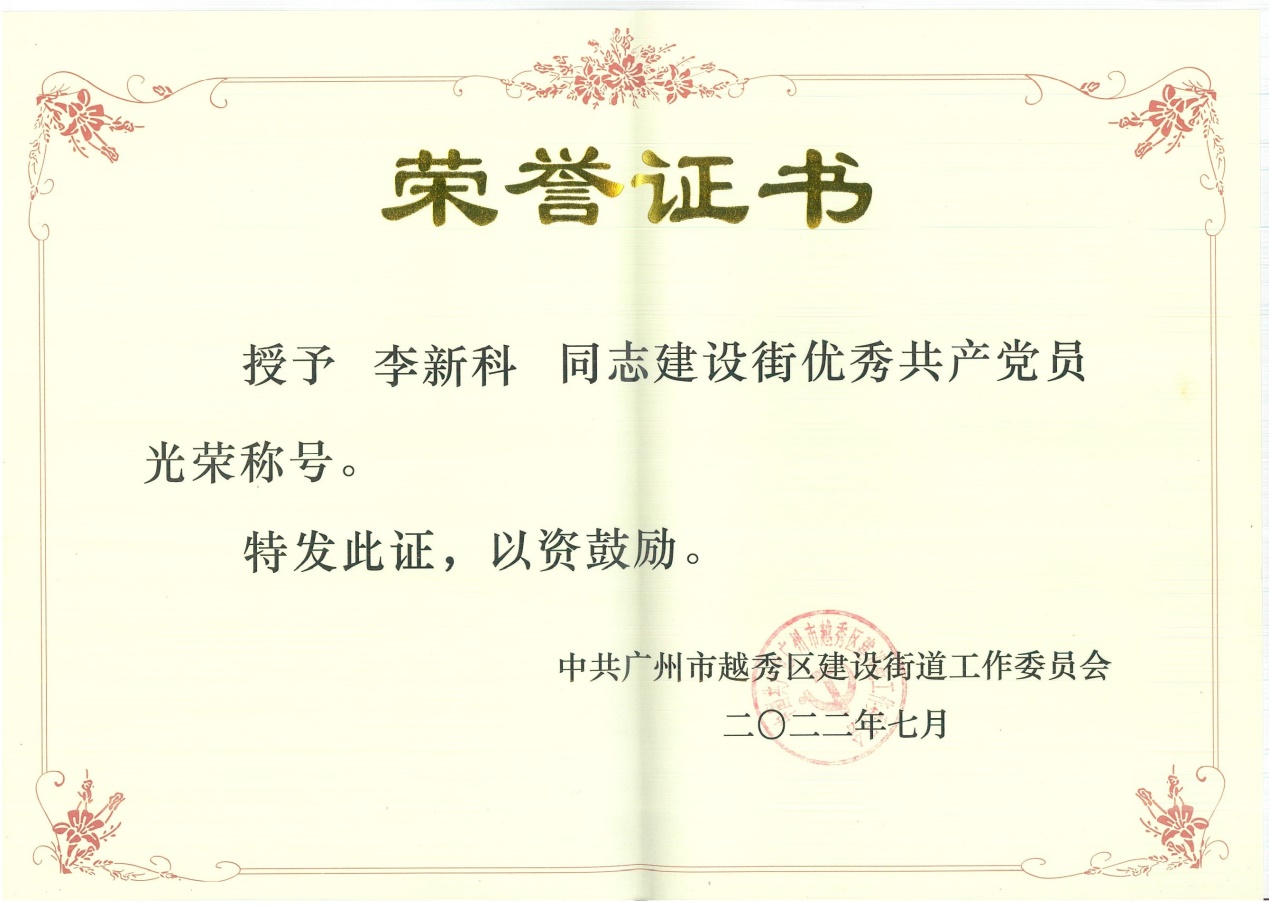 2022年經(jīng)組織考察,李新科同志綜合表現(xiàn)優(yōu)異,被授予優(yōu)秀共產(chǎn)黨員光榮稱號。
